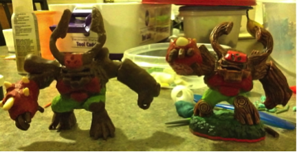Details (Left Picture): Modeling chocolate character on the left. Action figure on right.