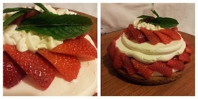 Details (Right Picture): Graham cracker crust, with fresh cut strawberries, and piped cool whip cheesecake.