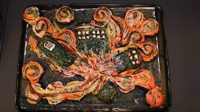 Fruit-by-the-Foot. Fossil shapes made from imprinting toys before baking.