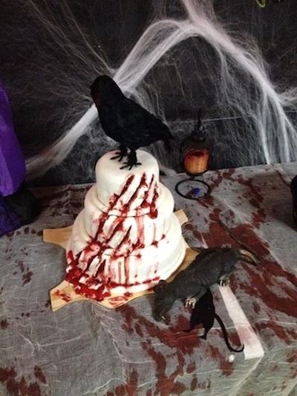 Details: Blue Velvet cake and cupcakes aranged to resemble