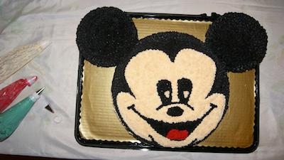 Details: One layered cake. Chocolate and vanilla buttercream icing piped with a star tip.